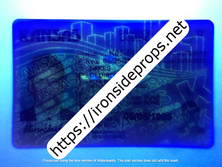 The Kansas Driver License resembles the standard form of the United States driver’s license. It has a background with a pink and blue dot pattern, an eagle on the right side, and a Kansas state seal with a star on the left side. The top right has the words “Kansas” with an arrow that points to the left, while the bottom right says, “Driver License”. The capital letter “N” flashes in yellow when tilted.