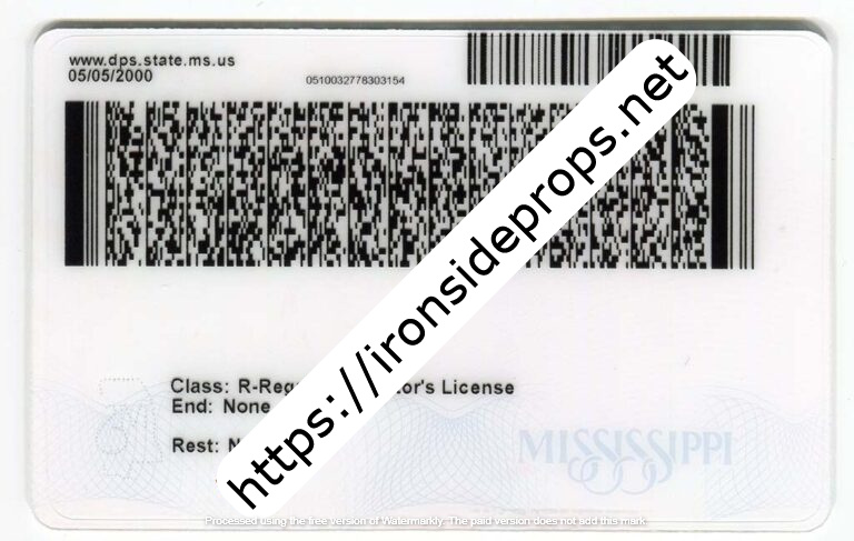 Make sure you’re prepared to travel in Mississippi with a real identification card issued by the MS BMV. Our Mississippi real driver license is printed on PVC plastic and meets all state guidelines. It holds up in any weather,and if it gets bent up, the lamination will protect your personal information from the elements.